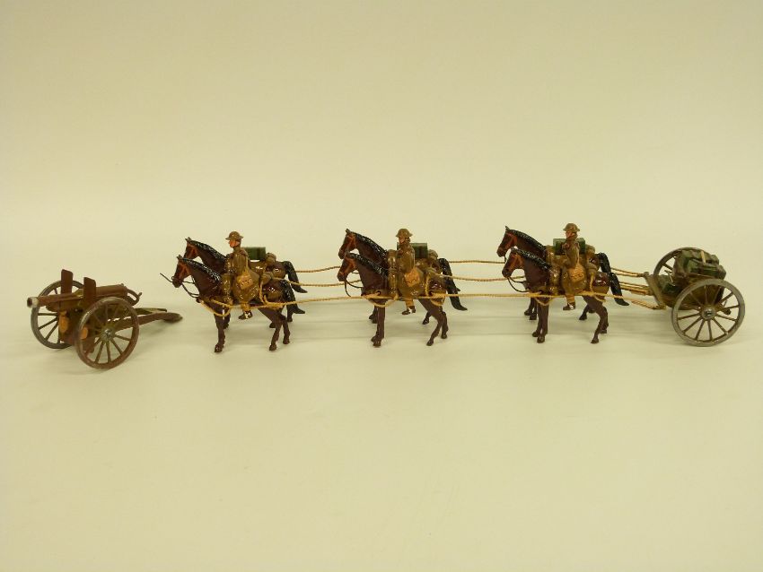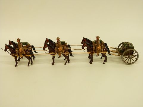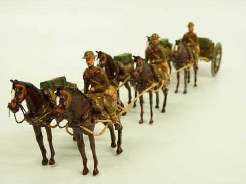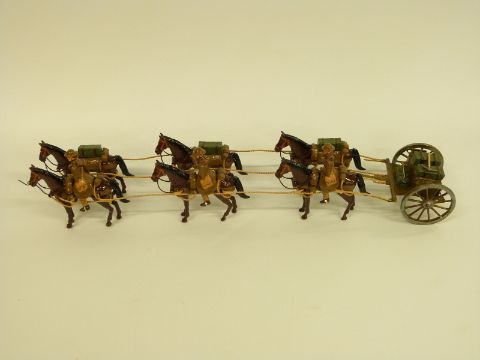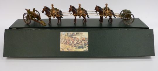 Tommy Atkins diecast WWI soldier set comprising three soldiers and six horses pulling a wagon and field gun, in original box