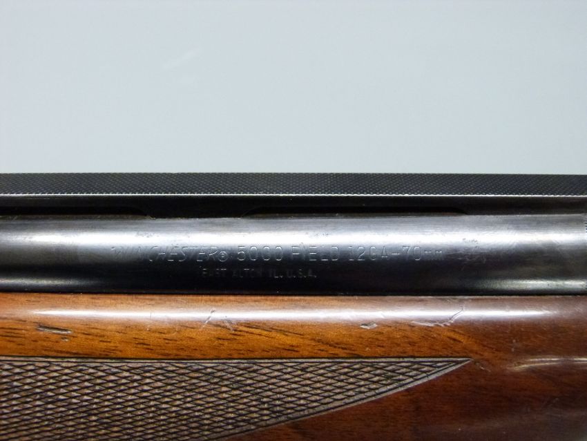 Winchester 5000 Field 12 bore over and under shotgun with engraved locks and trigger guard, single selective trigger, chequered semi-pistol grip and forend, raised ball foresight, vented top rib and 28 inch 1/4 and unchoked barrels, overall length 114.5cm, length of pull 36cm, serial number 540345. PLEASE NOTE THAT A VALID RELEVANT FIREARMS/SHOTGUN CERTIFICATE IS REQUIRED TO HANDLE/PURCHASE THIS ITEM.