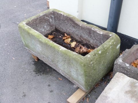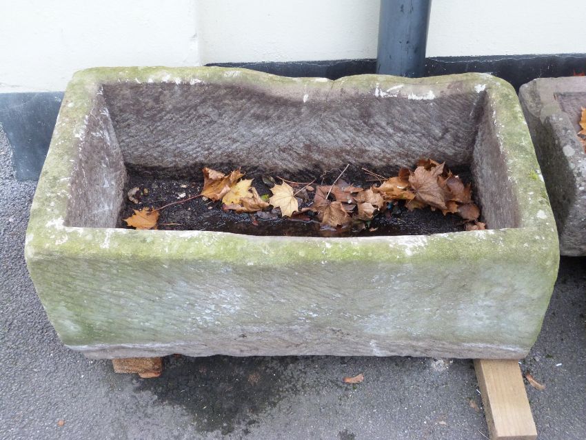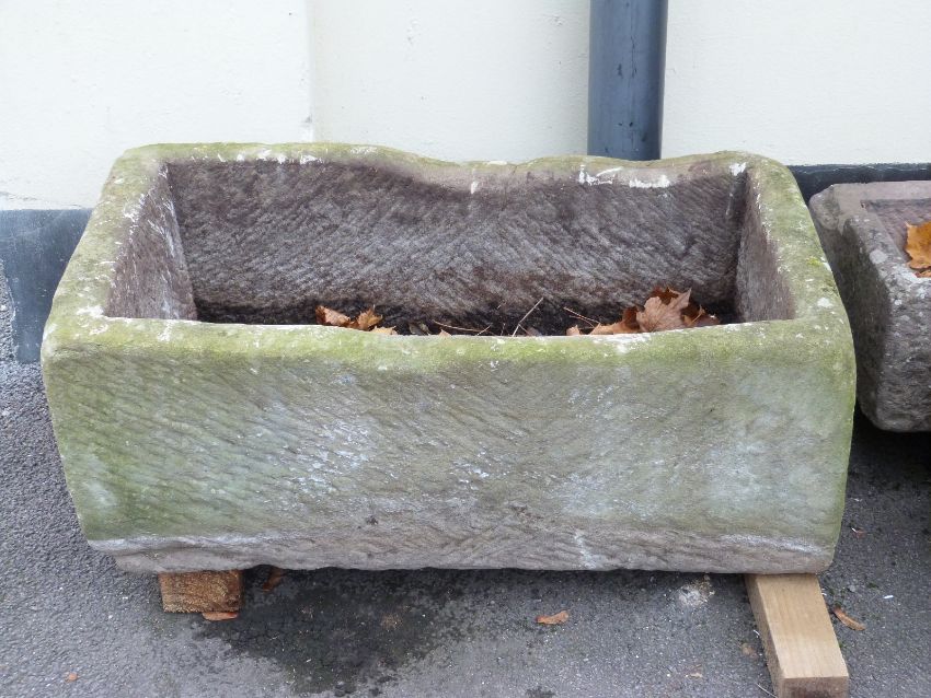 A rectangular carved natural stone trough (L88 x W50 x H35cm)