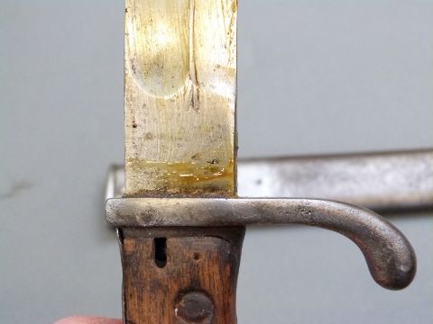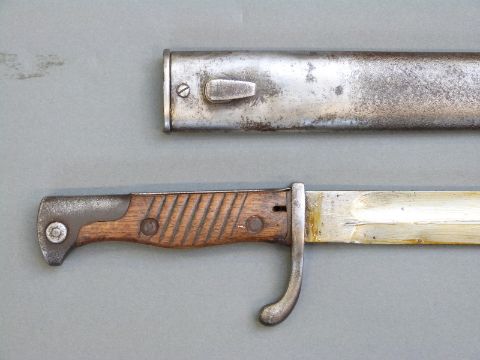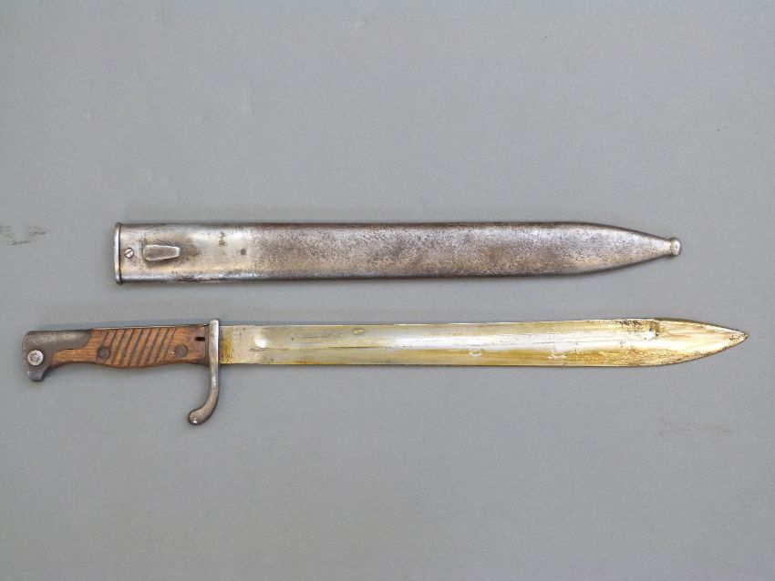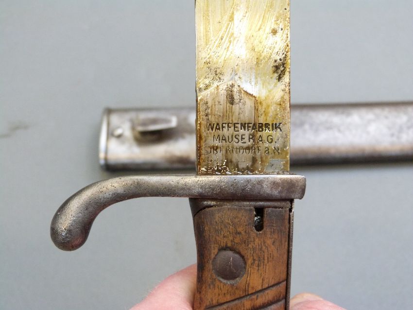 WWI German S98/05 bayonet with steel scabbard marked 'WAFFENFABRIK MAUSER A G BERNDOF a n' to blade, also W17 under crown , blade length 36cm