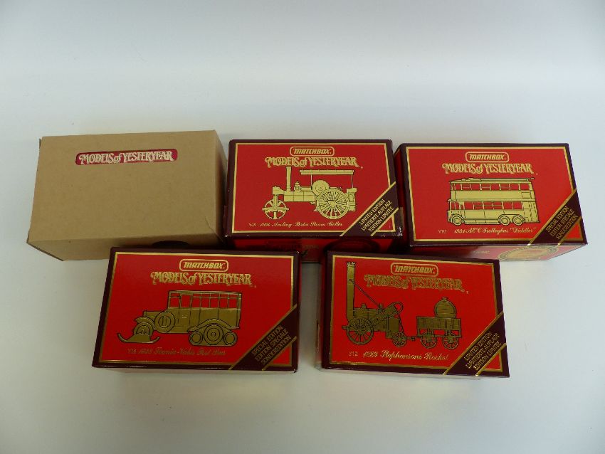 Five Matchbox Models of Yesteryear special edition diecast model vehicles, all in original boxes.