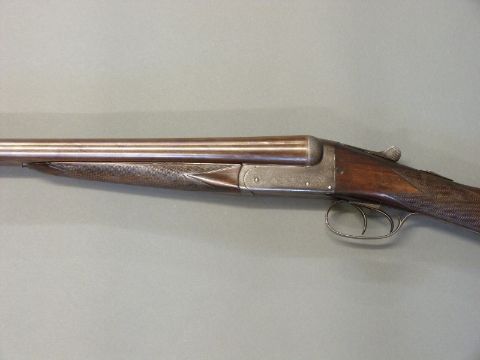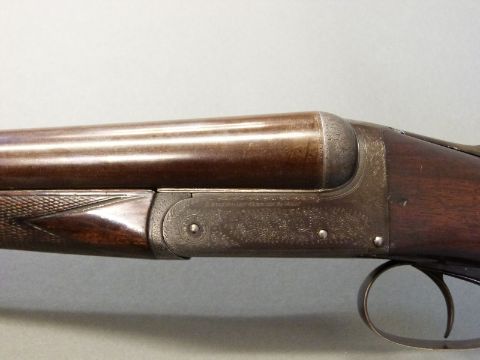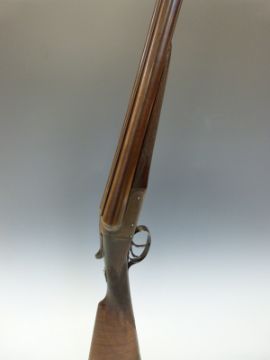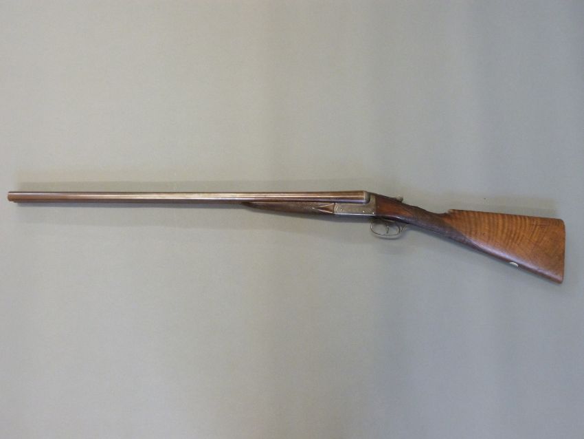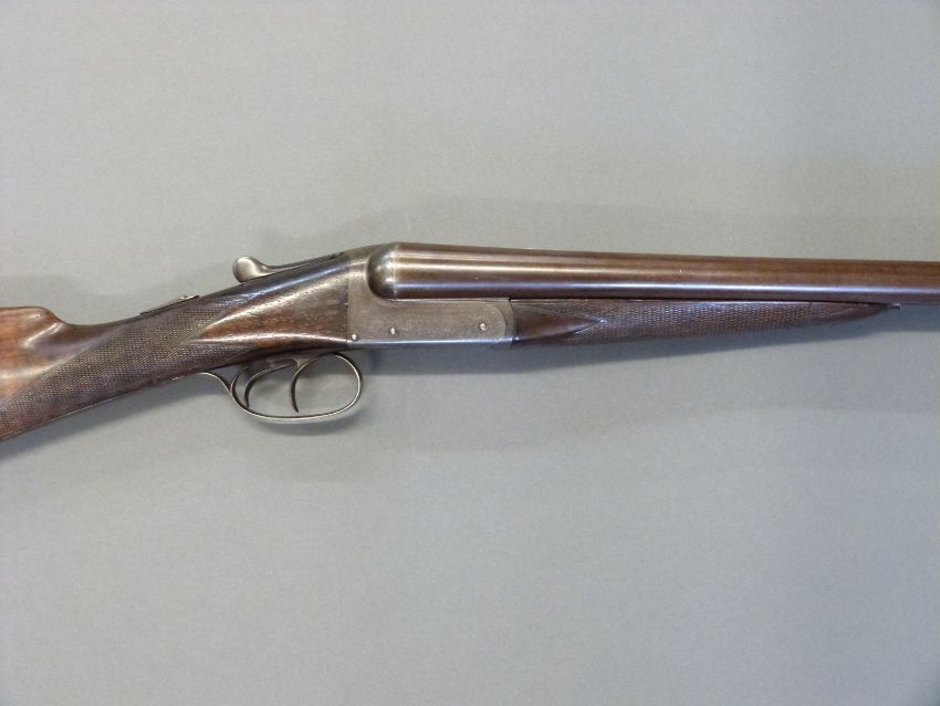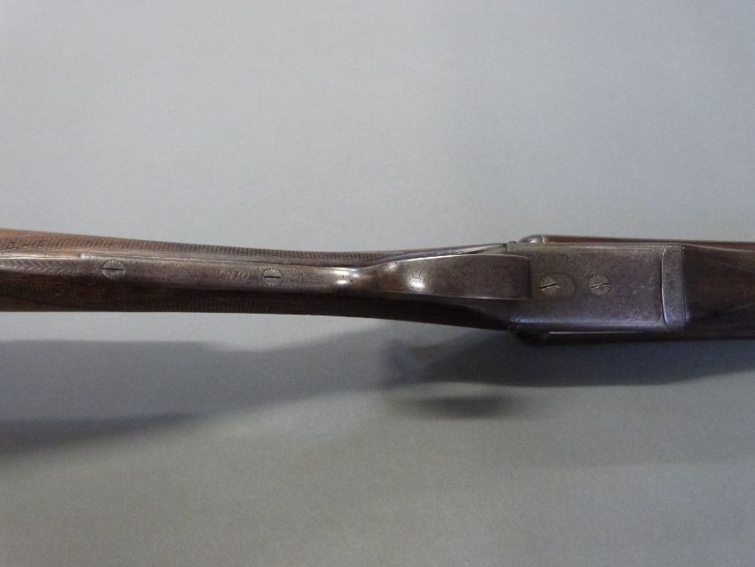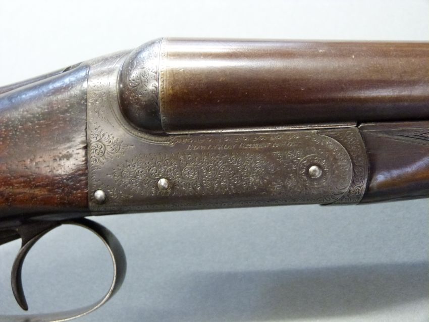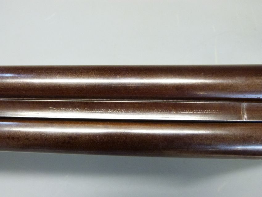 Edwinson Green & Son of Gloucester and Cheltenham 12 bore side by side shotgun with named and engraved locks, chequered grip and forend, double trigger, engraved trigger guard, top plate, top lever and underside, vacant cartouche to underside of the stock and named 28 inch Damascus barrels 1/2 and unchoked, overall length 112cm, length of pull 35.5cm, serial number 6187. PLEASE NOTE THAT A VALID RELEVANT FIREARMS/SHOTGUN CERTIFICATE IS REQUIRED TO HANDLE/PURCHASE THIS ITEM.