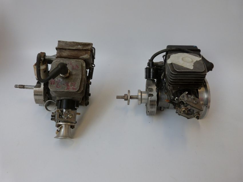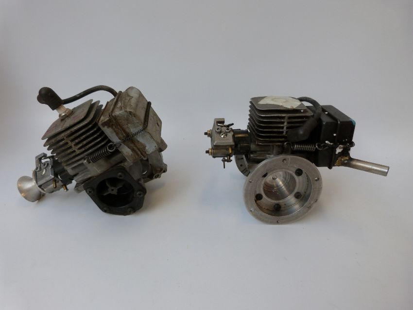 Two petrol engines to suit model aeroplanes or similar.