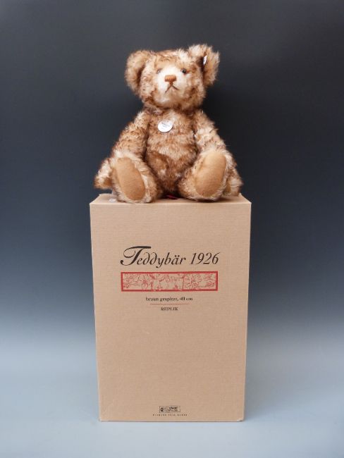 Steiff Teddy bear 1926 with brown tipped mohair and jointed limbs, 40cm tall, in original box