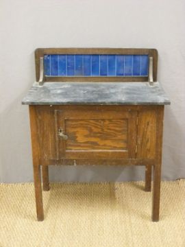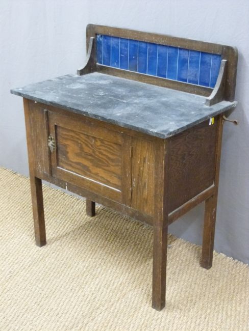 An oak tile backed washstand (H94 x W77 x D46cm)