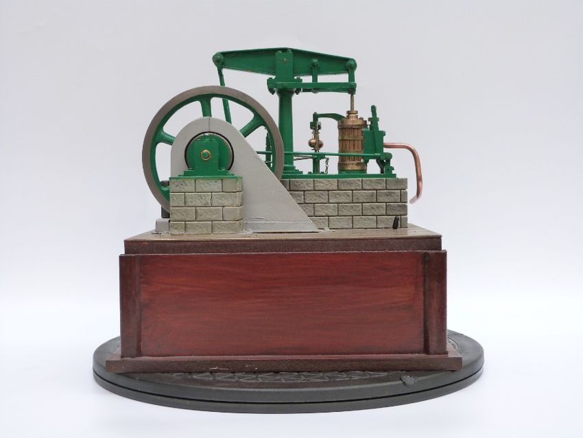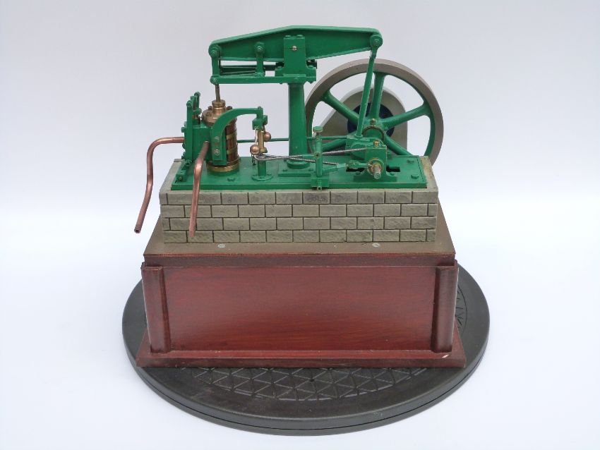 A scratch built model beam engine with electric motor in base to demonstrate, width 25cm
