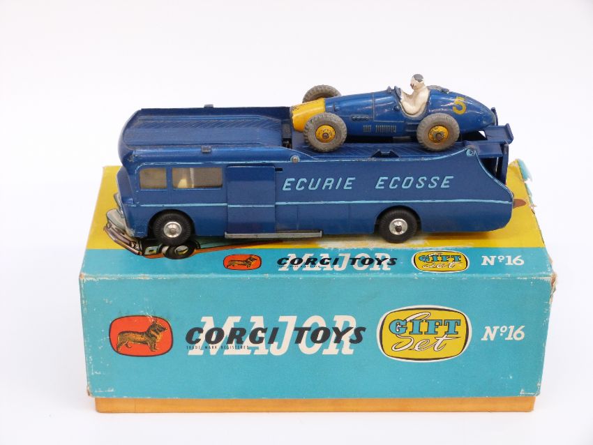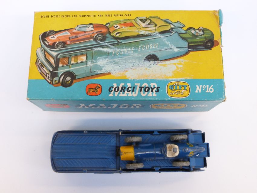 Corgi Major Toys diecast model Gift Set 16 Ecurie Ecosse Racing Car Transporter and Three Racing Cars, in original box, only one racing car presentAUCTIONEER ANNOUNCE ONLY ONE TRANSPORTER AND ONE CAR PRESENT