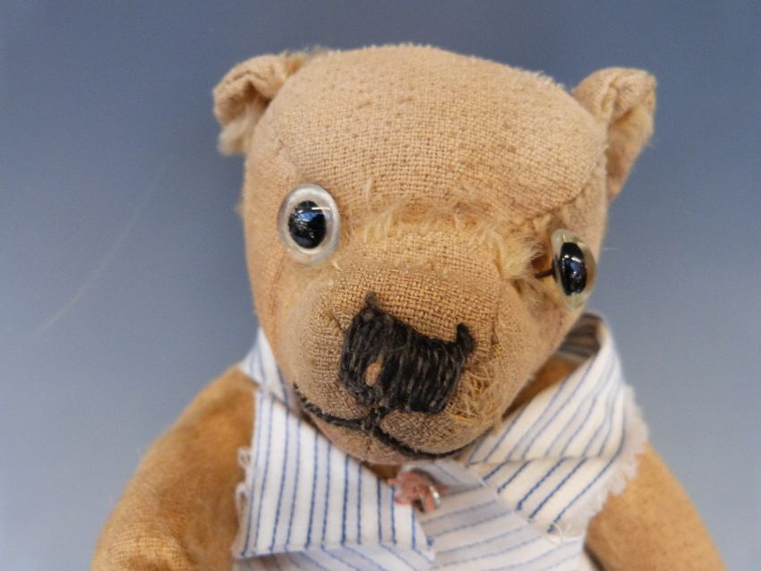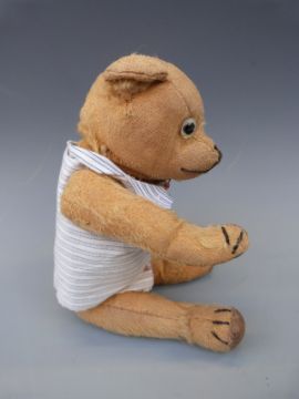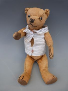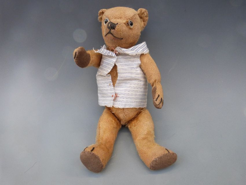 A small vintage Teddy bear with golden mohair, growler and jointed limbs, 29cm tall
