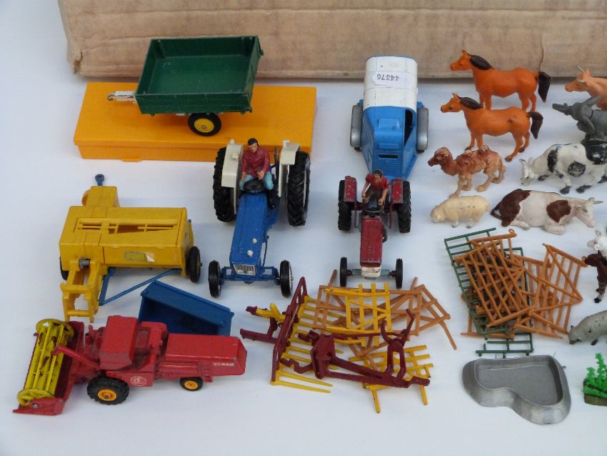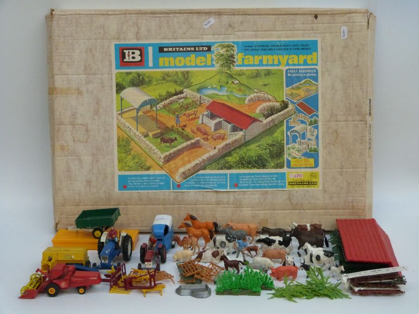 Britains Model Farmyard 4711 in original box together with a collection of Corgi, Britains and similar diecast model farm vehicles and accessories