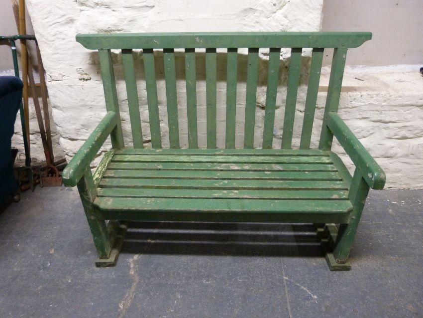 A vintage painted hall seat or garden bench (L125cm)