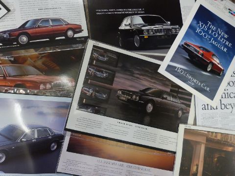 A collection of Jaguar advertising ephemera, including XJS, some proofs together with a Jaguar album based on the calendar prints