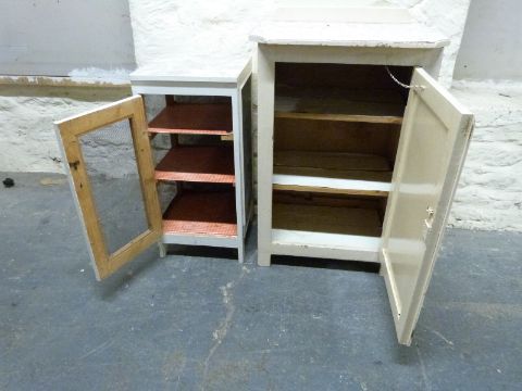 A vintage painted cupboard and meat safe (largest H96 x W66cm)