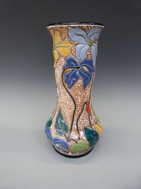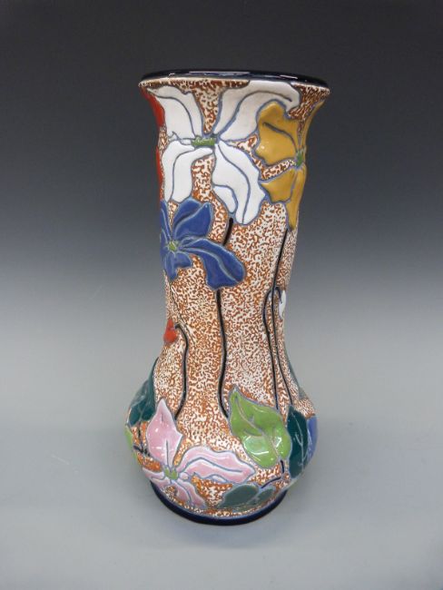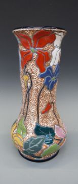 Art Nouveau Czech Amphora ware vase decorated with cyclamen flowers, approximately 37cm tall