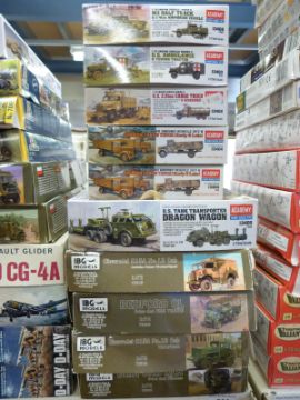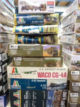 Twenty Italeri, Italeri Academy and IBG model military vehicle kits including C-47 Skytrain, D-Day sets, WACO GC-4A etc, all in original boxes