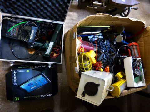 A quantity of electrical test items including Gunson strobes, Archos tablet, lights etc
