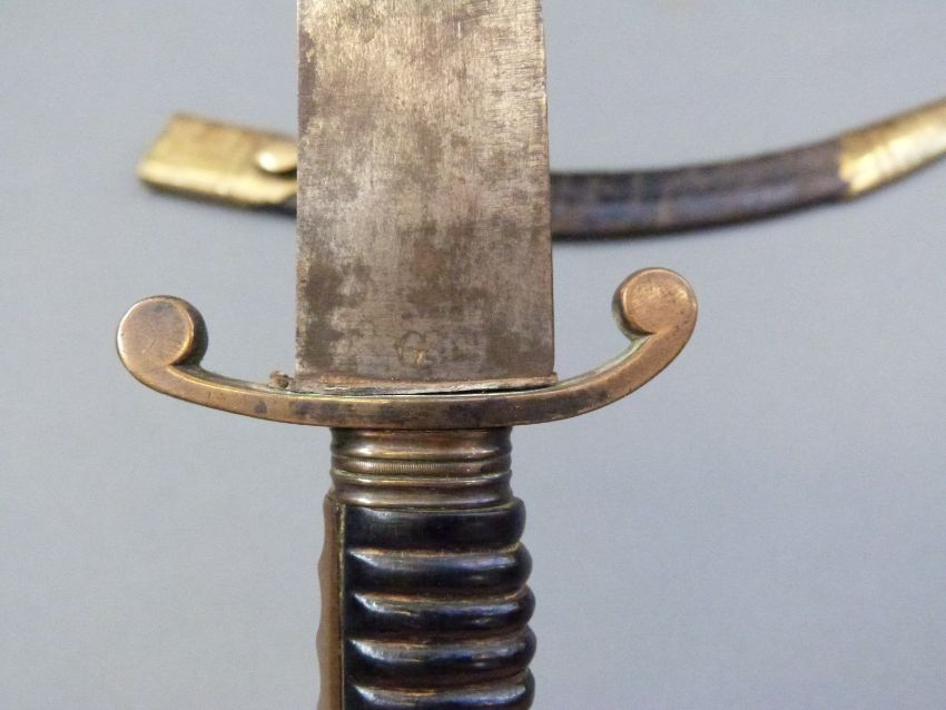 An 18thC British Naval dirk marked G to the 38cm blade, with leather scabbard