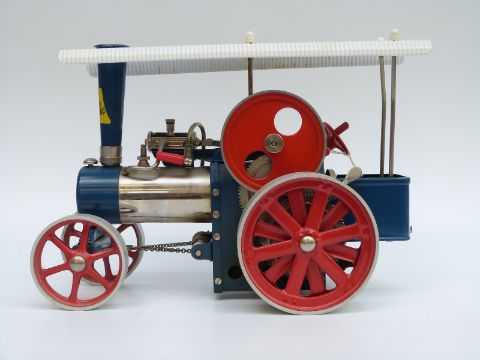 Wilesco Old Smokey live steam traction engine with solid fuel burner, slip eccentric reversing, chain steering and whistle
