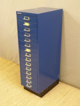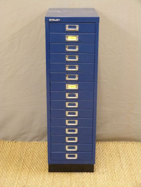 A metal chest of fifteen Bisley filing drawers (H94 x W40 x D28cm)