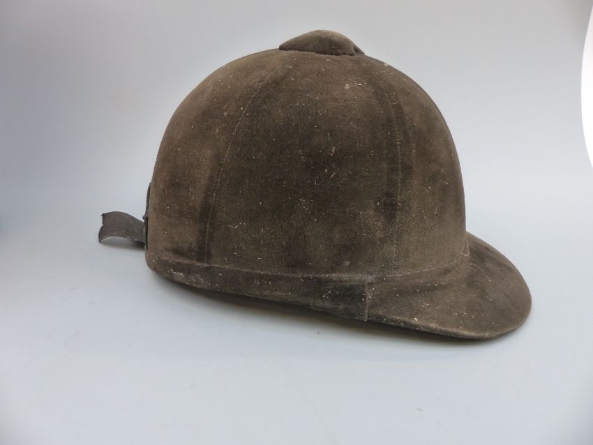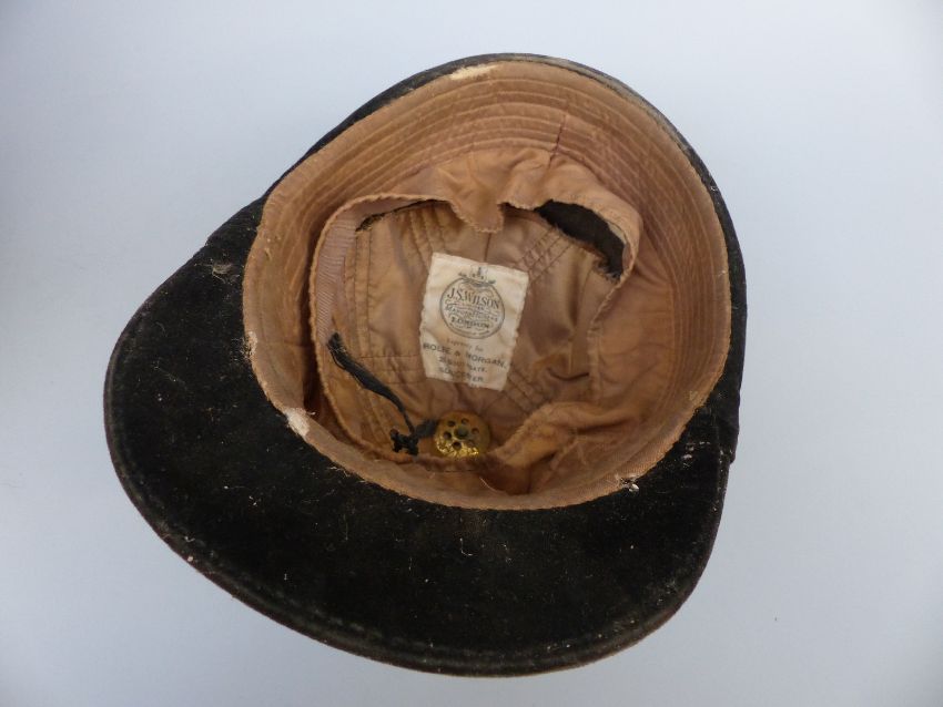 A peaked 'Sandringham' riding hat by J.S.Wilson Ltd, London W, made for Rolfe and Morgan, 20 Southgate, Gloucester, in Christies' of London hat box