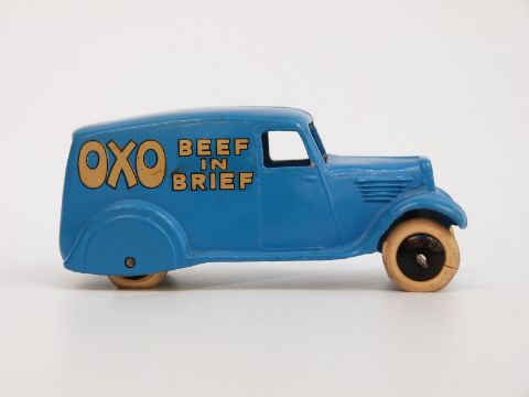 Dinky Toys diecast model Oxo Beef At Its Best delivery van with blue body, gilt decals, black hubs and cream tyres