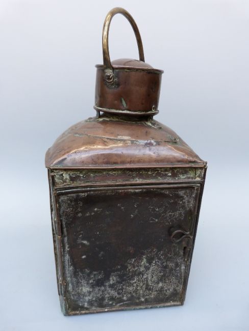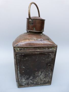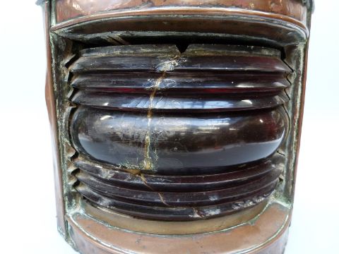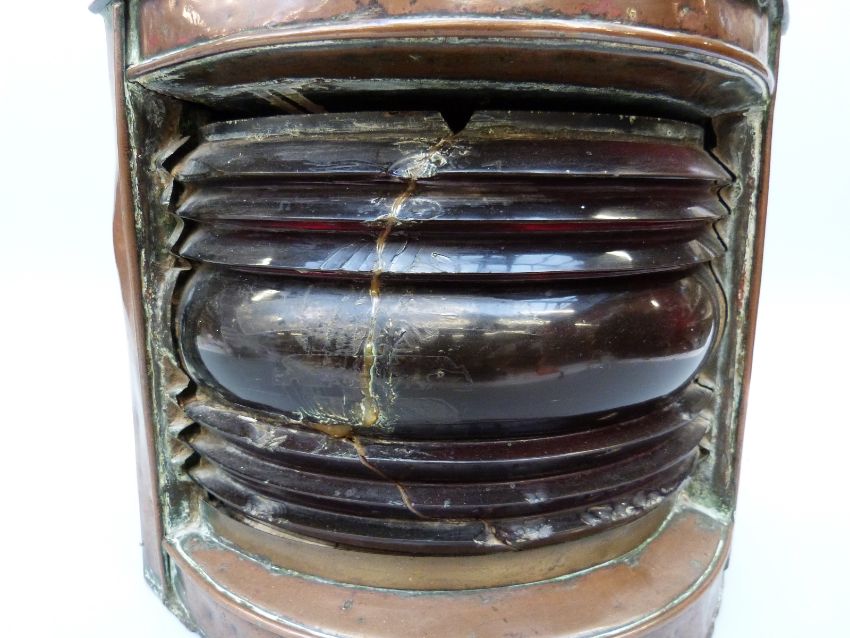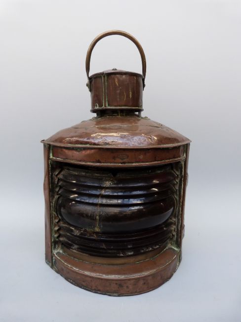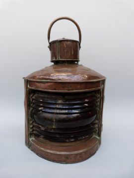 A large copper port ship's navigation lamp, height 43cm