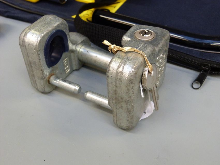 Winterhoff 'Robstop' WS 3000 plus caravan hitch lock, complete with two keys (new price over £140) together with a Milenco wheel lock