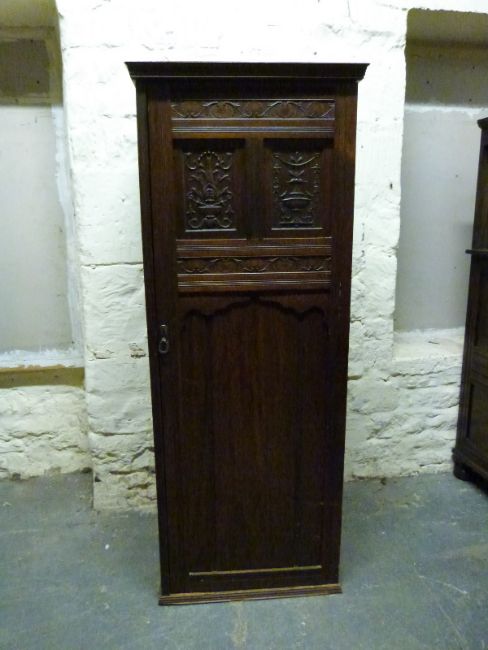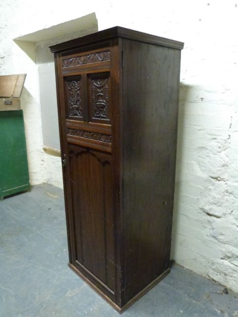A 19thC carved walnut single wardrobe or hall cupboard (H172 x W67 x D70cm)