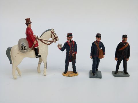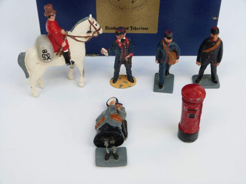 Five Marlborough hand painted lead figures and a post box in branded box