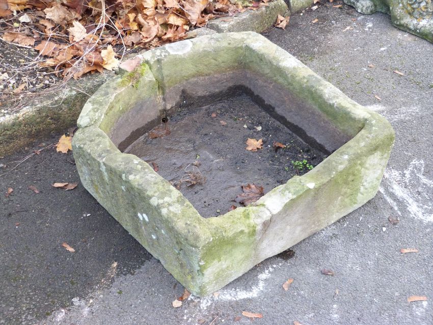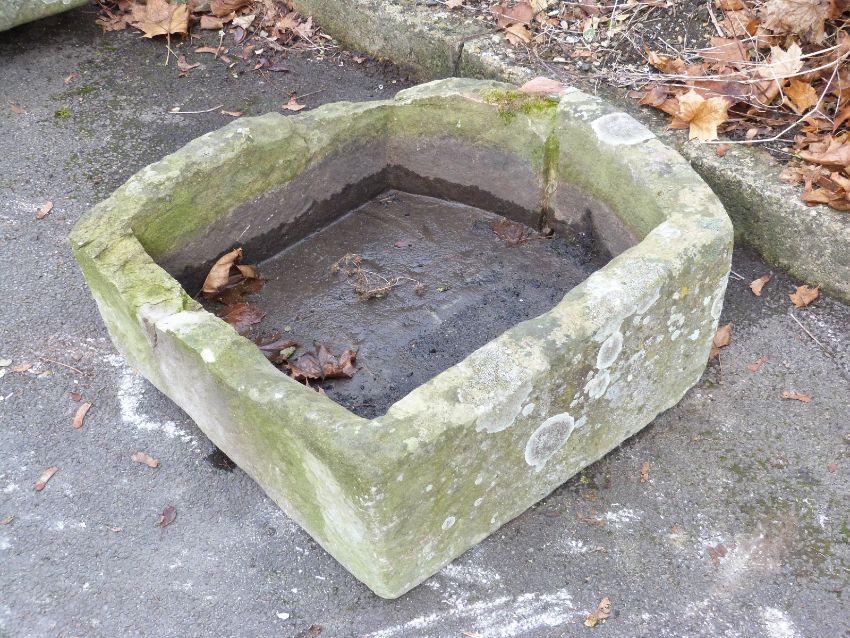 A D shaped carved natural stone trough (W67 x D69 x H22cm)