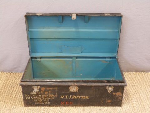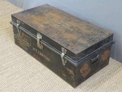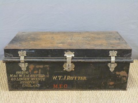 A military metal trunk with stencilled W.T. Rutter MFO 198208 Major W. T. J. Rutter (later OBE) plus address