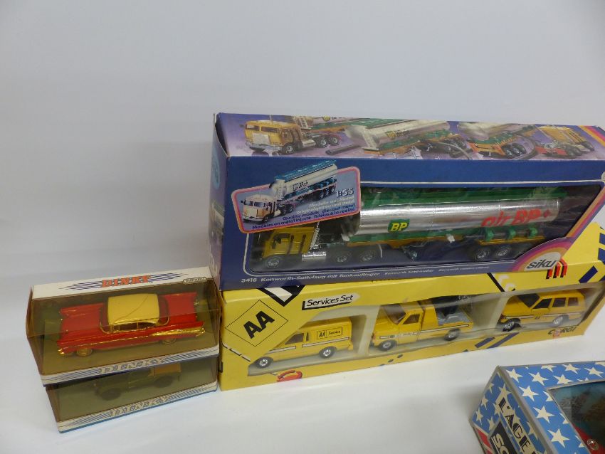Eight Corgi, Dinky and similar diecast model vehicles including State Landau 41, Service Set C20 etc., all in original boxes