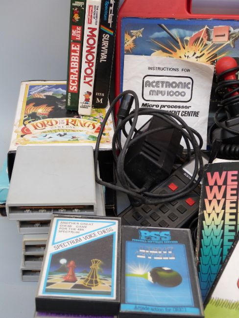 Acetronic MPU1000 vintage games console together with a large quantity of accessories and games, some Sinclair