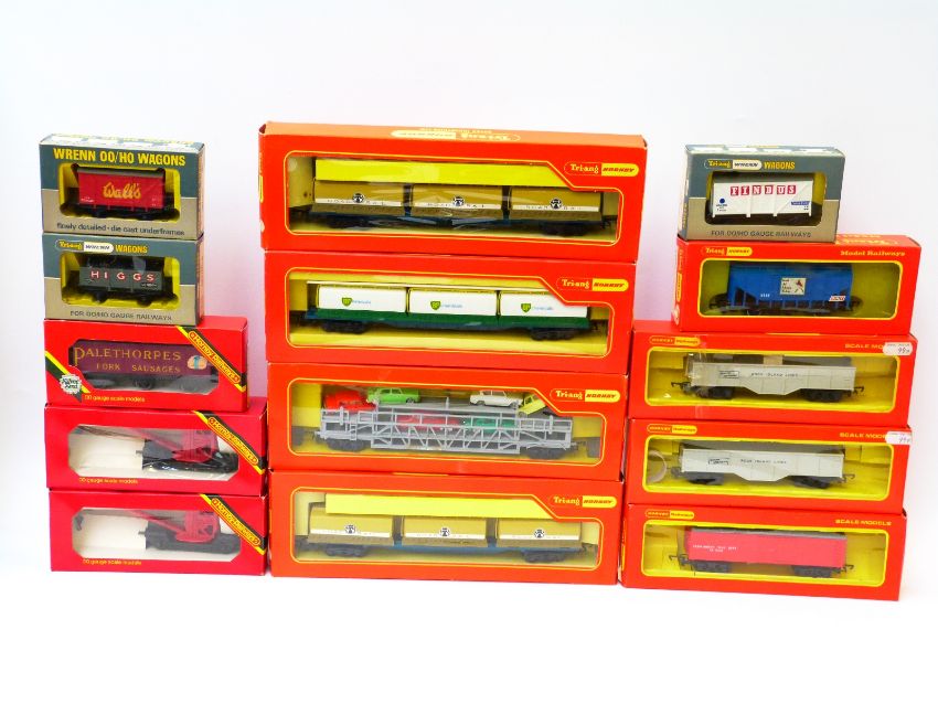 Twenty-five Tri-ang, Lima, Wrenn and Hornby 00 gauge wagons and wagon sets including Car Transporter, Operating Crane Trucks etc., all in original boxes