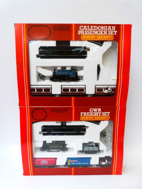Two Hornby 00 gauge train sets Caledonian Passenger Set R540 and GWR Freight Set R535, both in orginal boxes