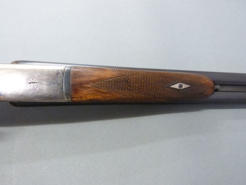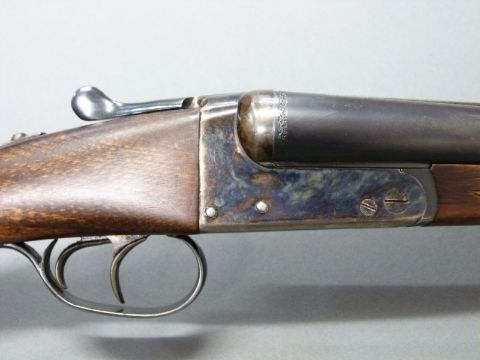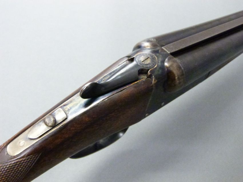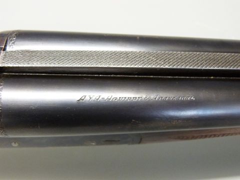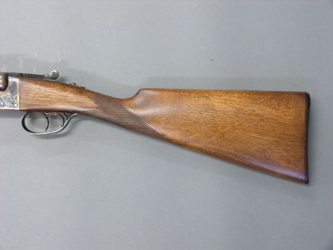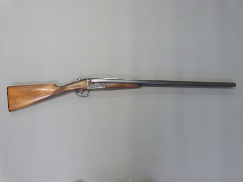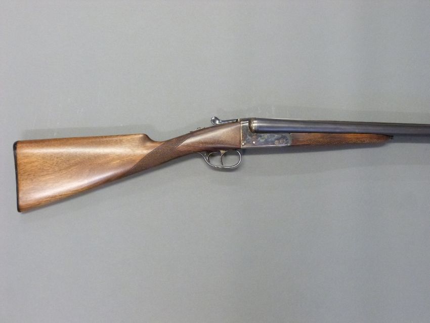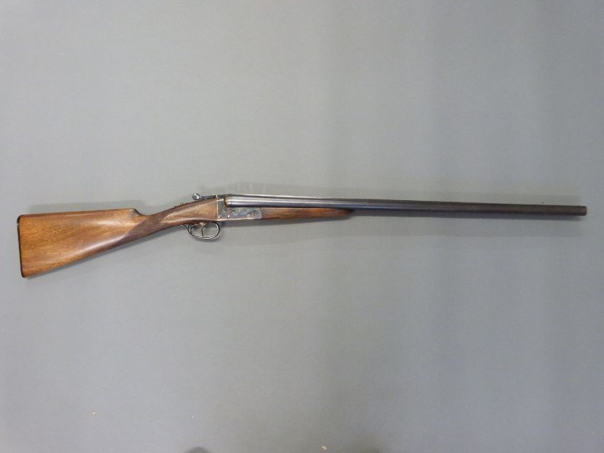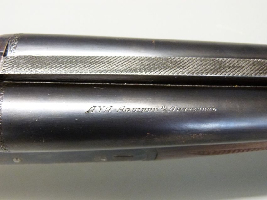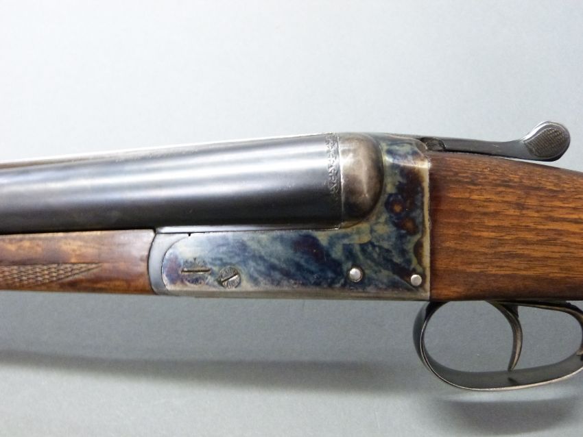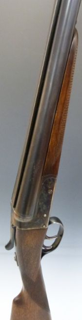 AYA Yeoman 12 bore side by side shotgun with chequered grip and forend, double trigger, matte rib, raised forsight and 28 inch barrels, overall length 114cm, length of pull 37cm, serial number 358753. PLEASE NOTE THAT A VALID RELEVANT FIREARMS/SHOTGUN CERTIFICATE IS REQUIRED TO HANDLE/PURCHASE THIS ITEM.