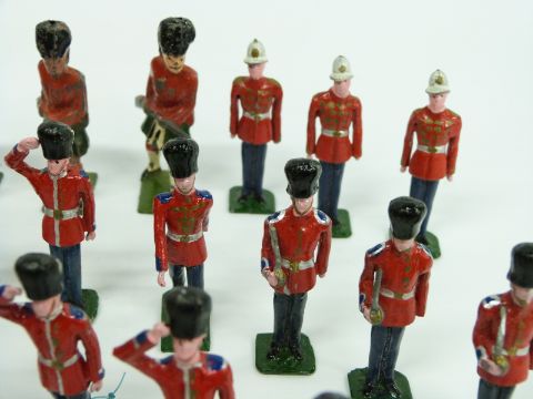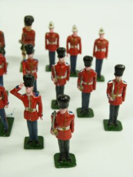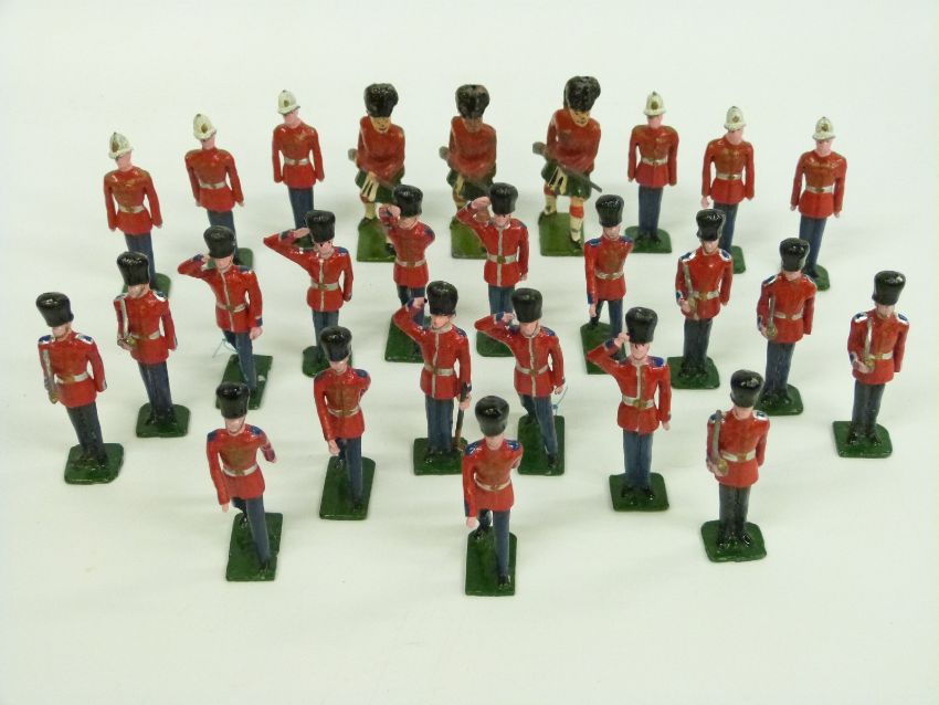 Twenty-six Britains and similar lead soldiers comprising 17 Guardsmen and nine others including Highlanders