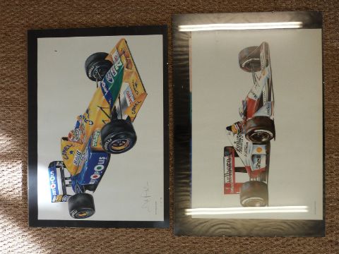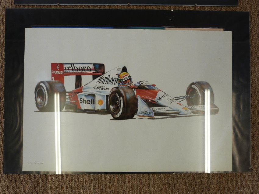 Mark Palumbo signed motor racing print dated 13-7-91, 43 x 63cm, a further unsigned print by the same artist and a quantity of motor racing posters