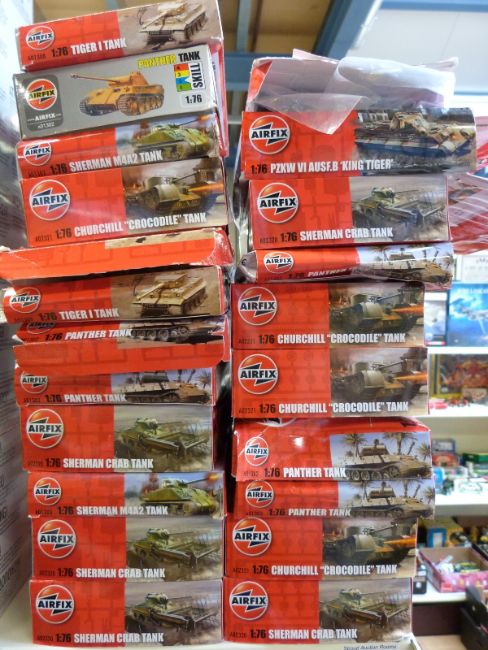 Twenty-two Airfix 1:76 scale model tank kits, all in original boxes