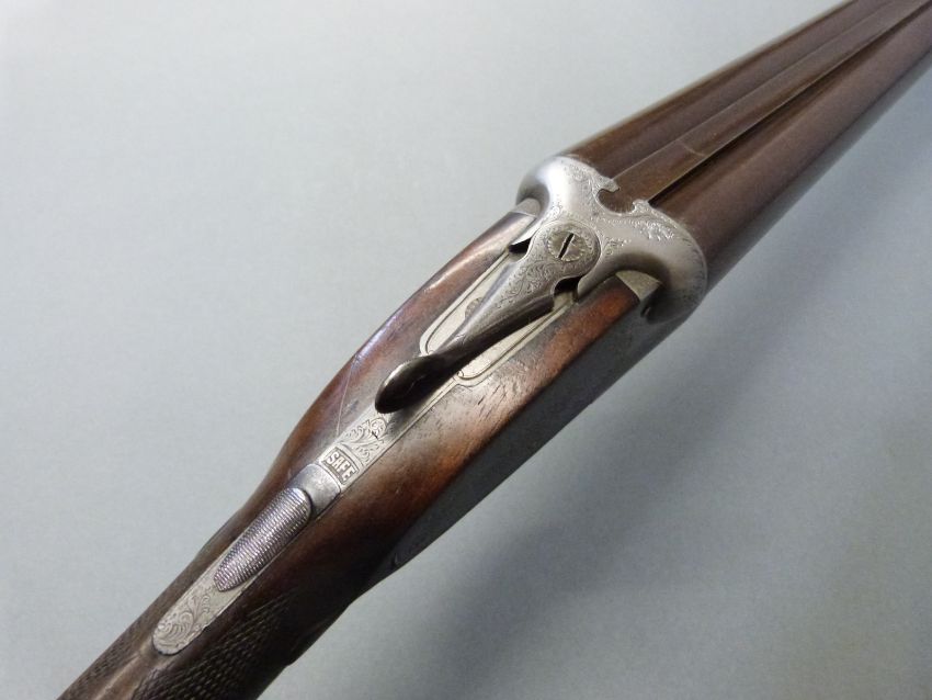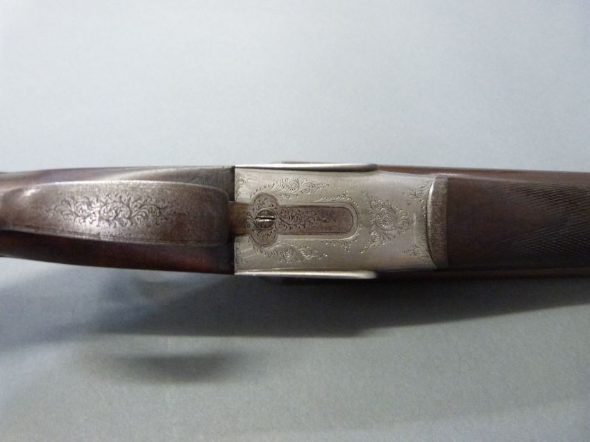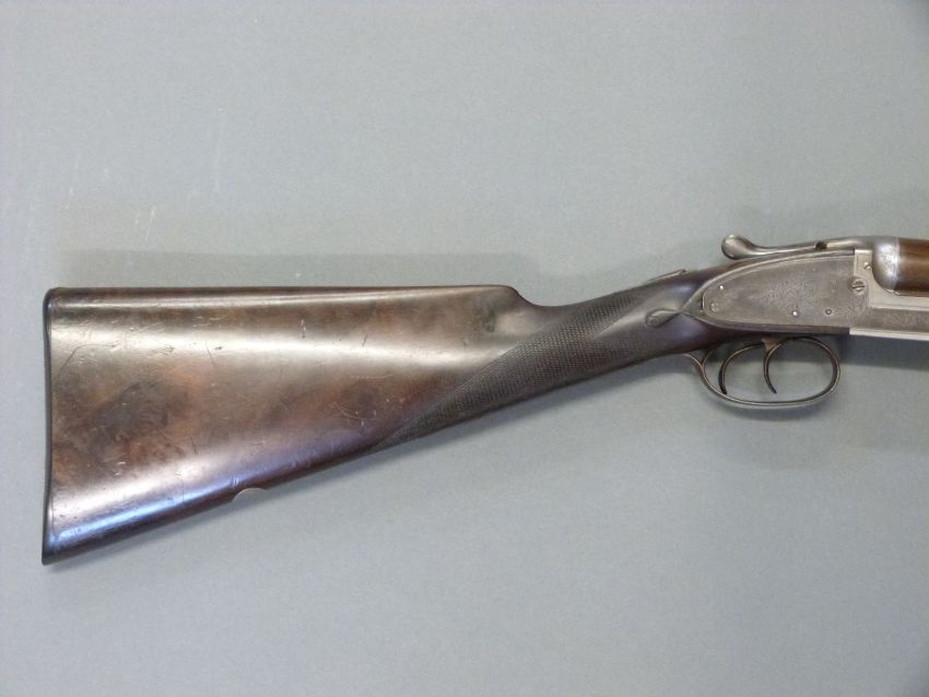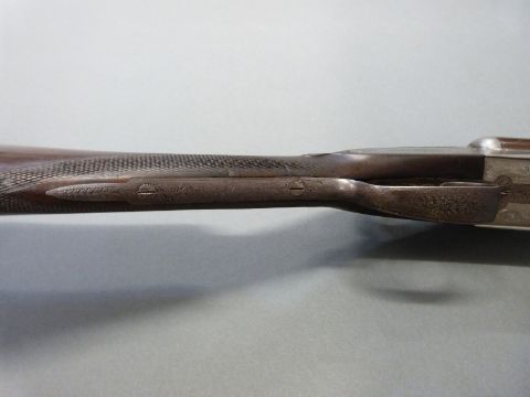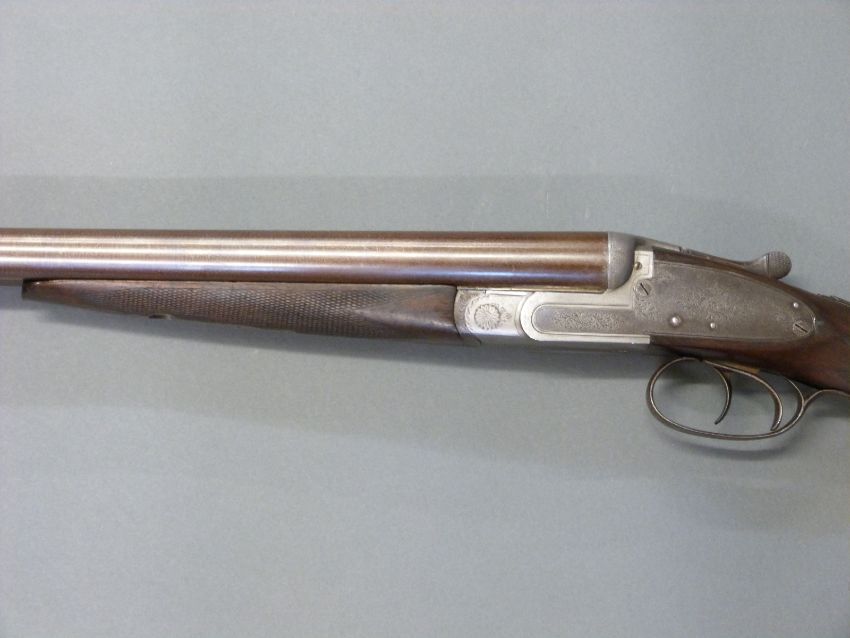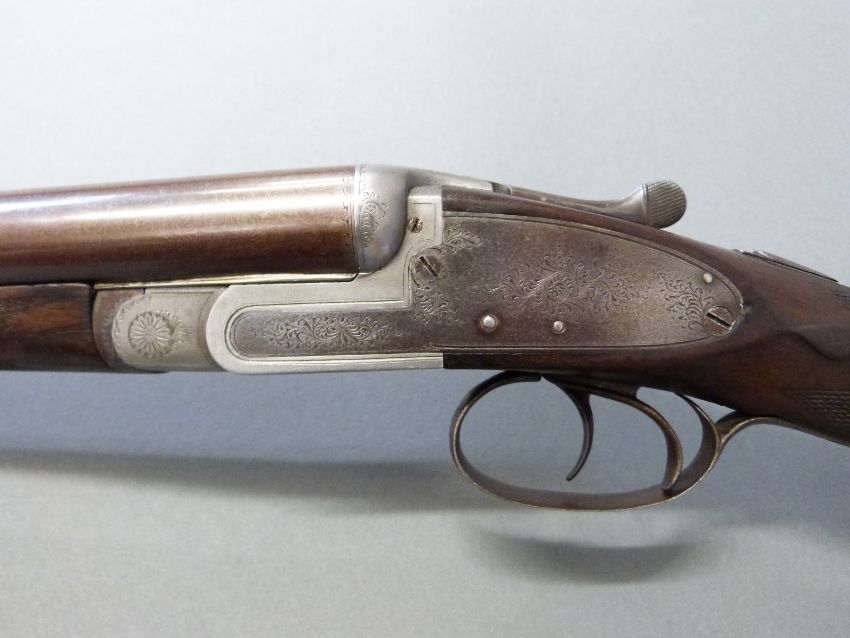Thomas Horsley 12 bore side by side sidelock ejector shotgun with named and engraved locks, engraved trigger guard, top plate, top lever and underside, double trigger, chequered grip and horn tipped forend, tear drop and vacant cartouche to the stock and 29.5 inch unchoked Damascus barrels engraved 'Thomas Horsley Maker York Patent 2440' and '2', overall length 115.5cm, length of pull 35cm, serial number 1322. PLEASE NOTE THAT A VALID RELEVANT FIREARMS/SHOTGUN CERTIFICATE IS REQUIRED TO HANDLE/PURCHASE THIS ITEM.