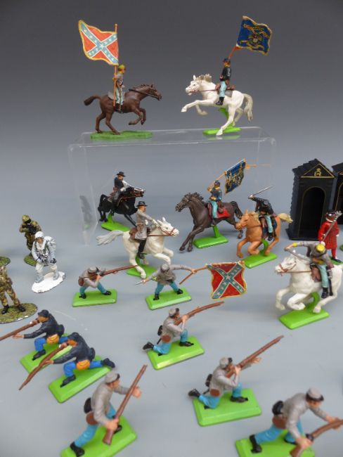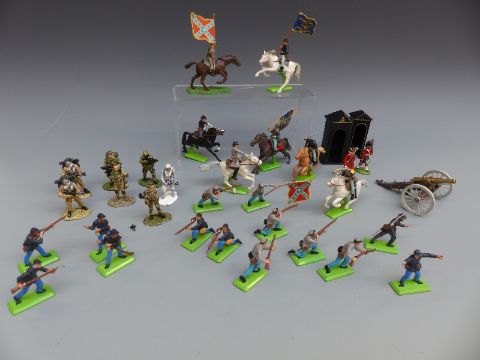 Over 20 Britains Detail model American Civil War soldiers, some cavalry and two field cannon, together with ten diecast model modern military soldiers
