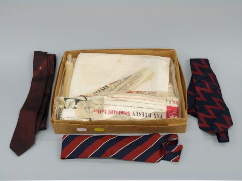 Regimental ties to include Royal Artillery, Queen's Dragoon Guards and a Maltese Cross emblem example, together with two white waistcoats and some bow ties