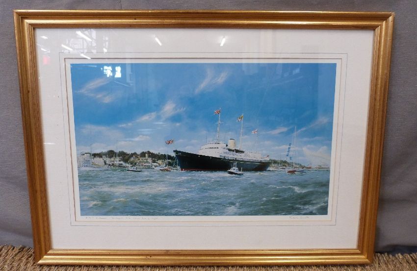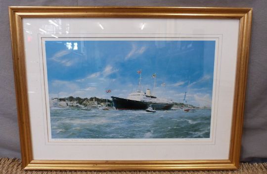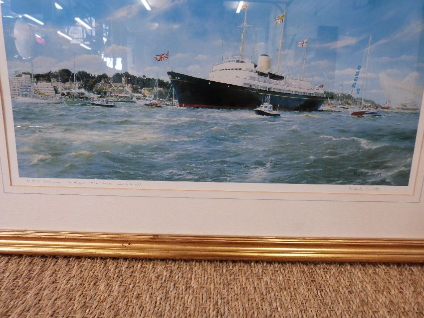 Robert Scott signed print 'HMY Britannia' 7th August 1996, Cowes, Isle of Wight, 34 x 55cm