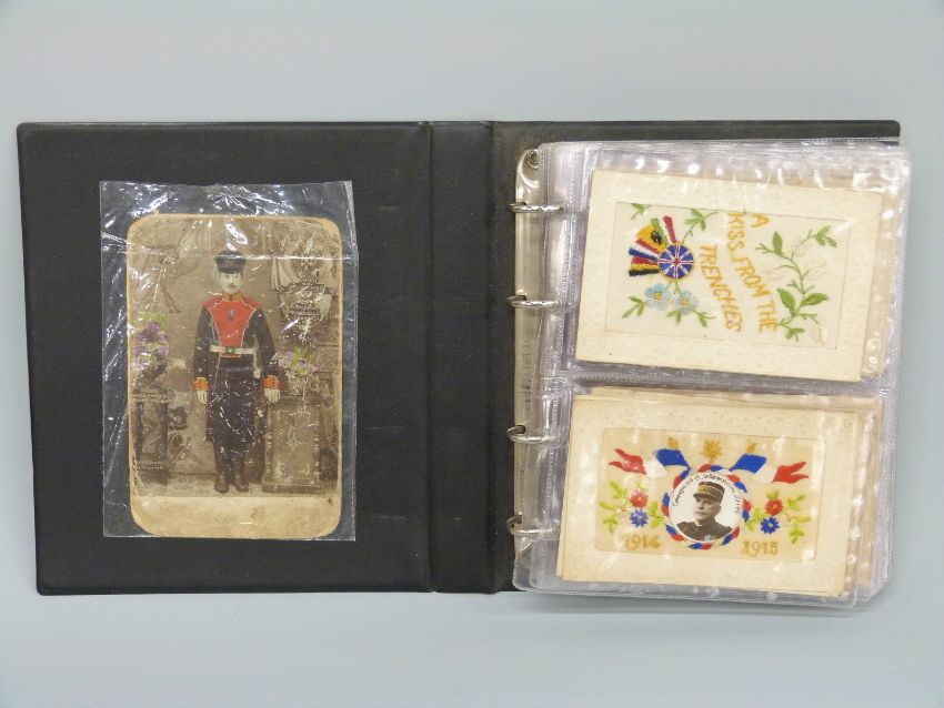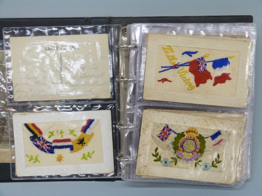 WWI silk postcards together with other cards to include Dragoon Guards and Royal Scots 7th Fusiliers, 50 in total