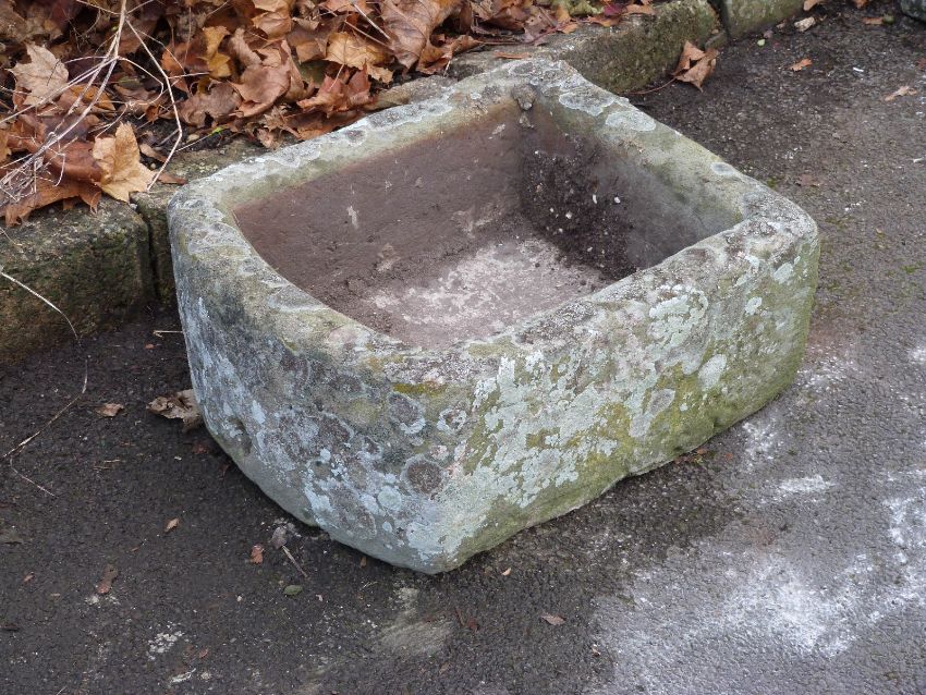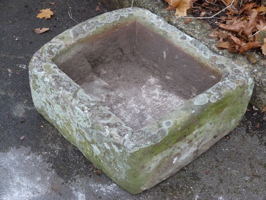 A small D ended carved natural stone trough (L53 x W46 x H20cm)