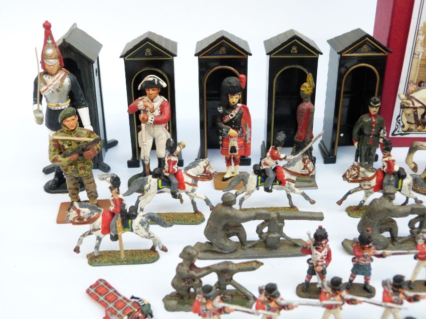 Fifty-five Britains, Del Prado and similar model soldiers and soldier sets including a Toy Soldier Centre The Guards set in original box