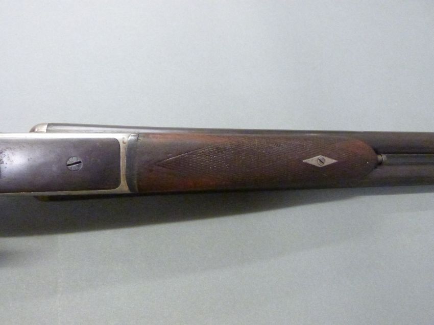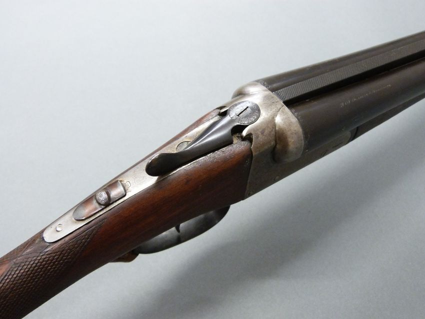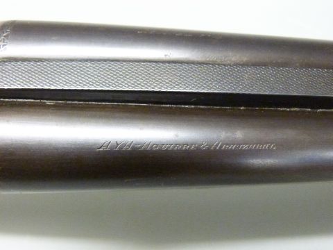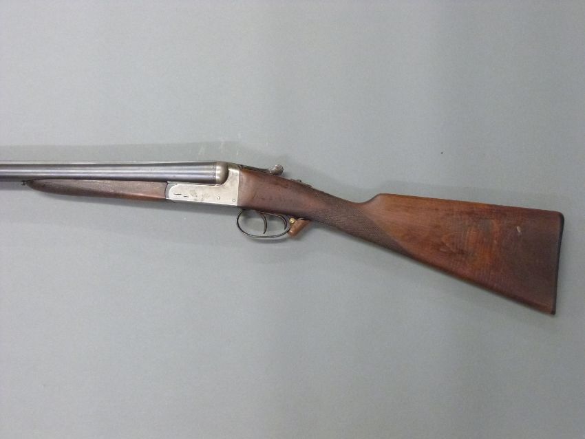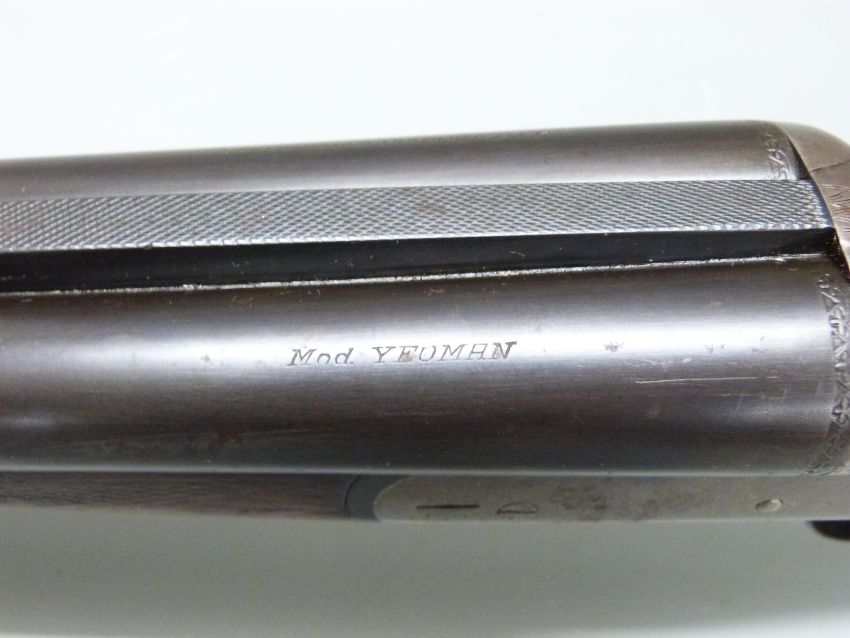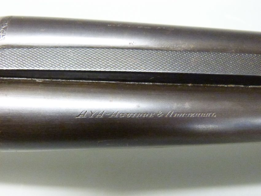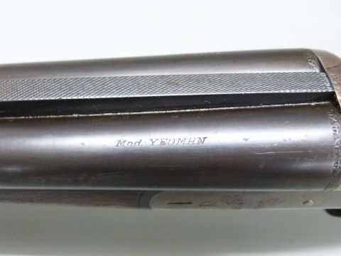 AYA Yeoman 12 bore side by side shotgun with chequered grip and forend, double trigger, raised rib, raised foresight and named 28 inch barels, overall length 113.5cm, length of pull 36.5cm, serial number 394461. PLEASE NOTE THAT A VALID RELEVANT FIREARMS/SHOTGUN CERTIFICATE IS REQUIRED TO HANDLE/PURCHASE THIS ITEM.