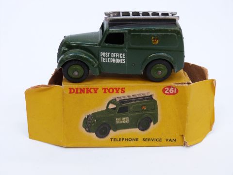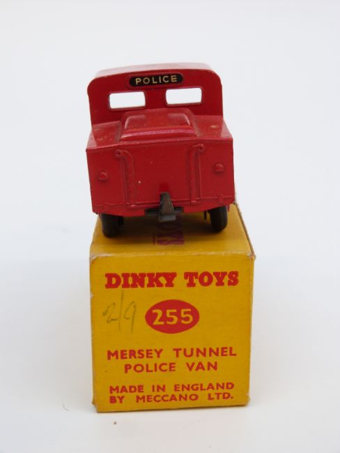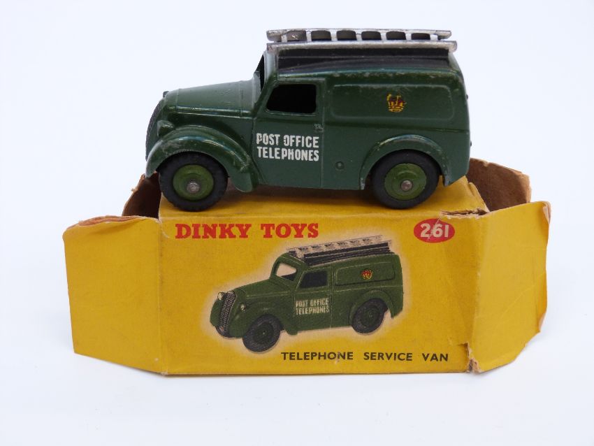 Two Dinky Toys diecast model vans Mersey Tunnel Police Van 255 and Telephone Service Van 261, both in original boxes