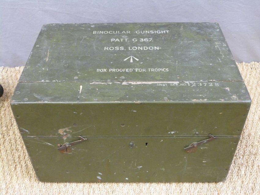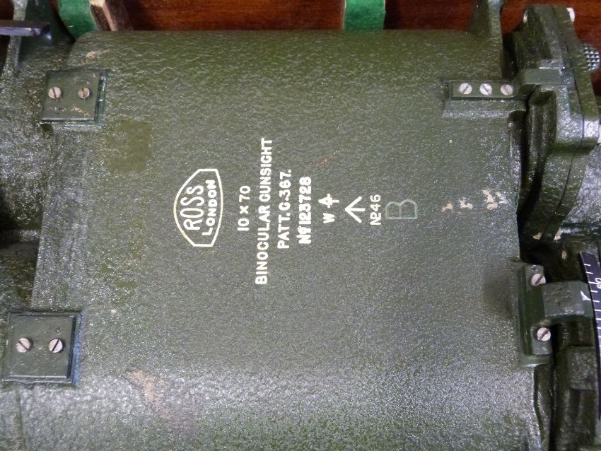 A boxed WWII Ross London pattern G367 10x70 binocular gun sight