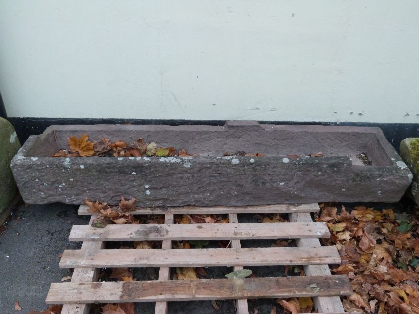 A rectangular carved natural stone trough (L160 x W40 x H24cm)