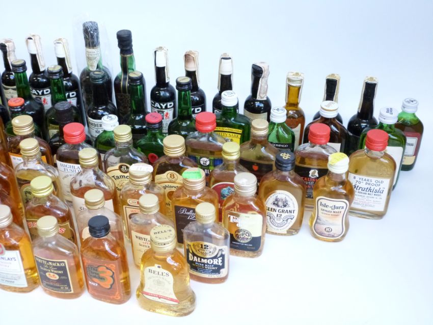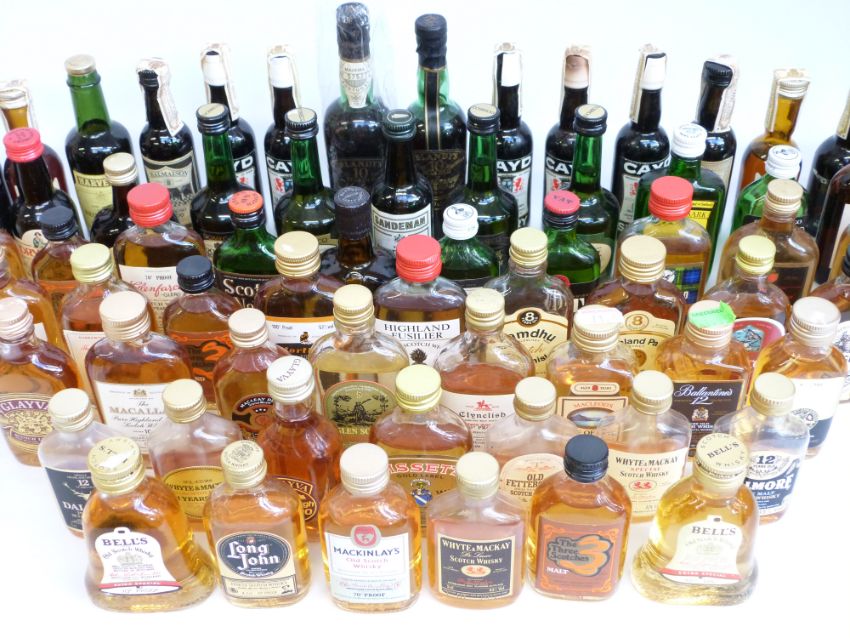 Approximately 45 whisky miniatures including Cutty Sark, Tamdhu, Glayram, Ballentines, Macallan, Mactunlays, Glenfarclas, Talisker and approximately 28 of sherry and port